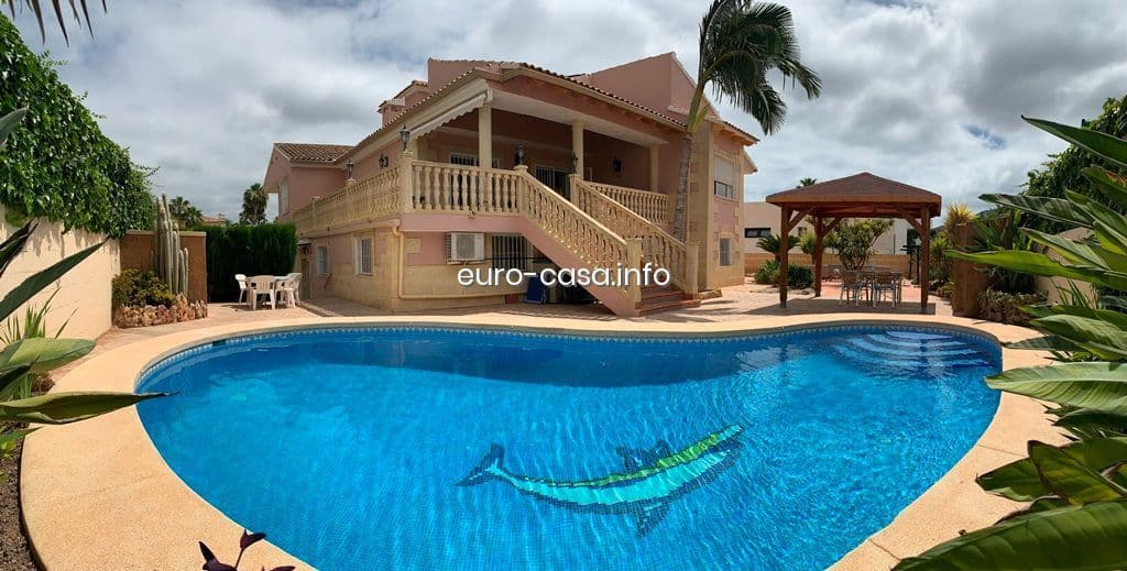 Espectacular vivienda situada en Alfaz del Pi. Una propiedad única que combina amplitud, confort y elegancia en cada rincón. La casa se asienta sobre un impresionante terreno de 10.000 metros cuadrados, de los cuales una buena parte está dedicada a árboles frutales, creando un entorno natural y privado que invita al descanso y la desconexión.La casa cuenta con un total de nueve habitaciones, ocho baños completos y un aseo adicional ubicado en la zona exterior, donde también encontramos una magnífica área de barbacoa equipada con cocina de verano, comedor, un acogedor salón con chimenea y una amplia zona de almacenamiento, perfecta para disfrutar de reuniones al aire libre durante todo el año.La vivienda principal se distribuye en tres plantas, todas conectadas tanto por escaleras como por ascensor. En la planta principal se accede a una gran terraza exterior con acceso directo a la piscina y a una cómoda zona de descanso, ideal para relajarse y disfrutar del clima mediterráneo. La planta baja ofrece un despacho, un amplio salón con chimenea que aporta calidez y elegancia, una zona de sauna con su propia ducha y armarios empotrados, además de un área de almacenamiento y una cámara de frío, pensada para garantizar la máxima funcionalidad en el día a día. En la última planta se encuentran parte de las habitaciones y otra cocina, lo que aporta independencia y comodidad adicional a la vivienda.Esta propiedad cumple con todos los requisitos para quienes buscan una casa espaciosa, versátil y equipada con todo tipo de comodidades.Una oportunidad única en Alfaz del Pi, perfecta tanto para residencia familiar como para inversión."Este anuncio puede contener errores y el contenido no es vinculante. Se muestra a título informativo y no contractual."