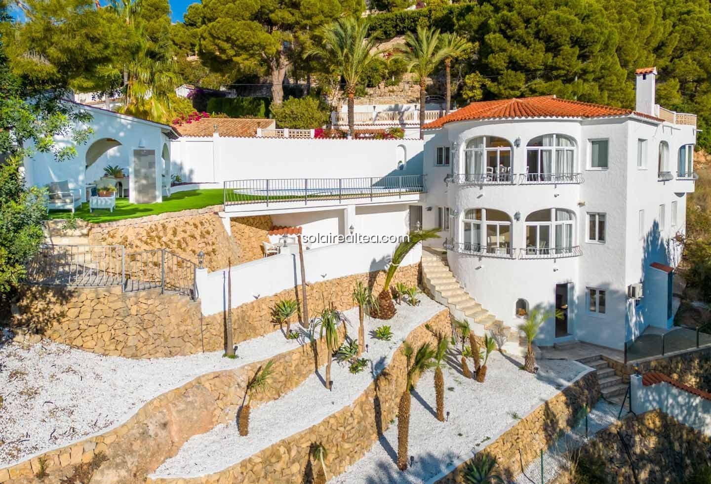 Magnifico chalet ubicado en una zona muy privilegiada del Albir. La propiedad se distribuye en una planta. La vivienda consta de 2 habitaciones, con 2 baños completos en suite, un aseo de cortesía, además de, un amplio salóncomedor y una cocina independiente. También cuenta con un pequeño despacho, y de un garaje el cual tiene uso de zona de lavado. Tiene zonas de almacenaje y un patio interior. Cuenta con un sótano diáfano el cual es un apartamento totalmente independiente, con un dormi...